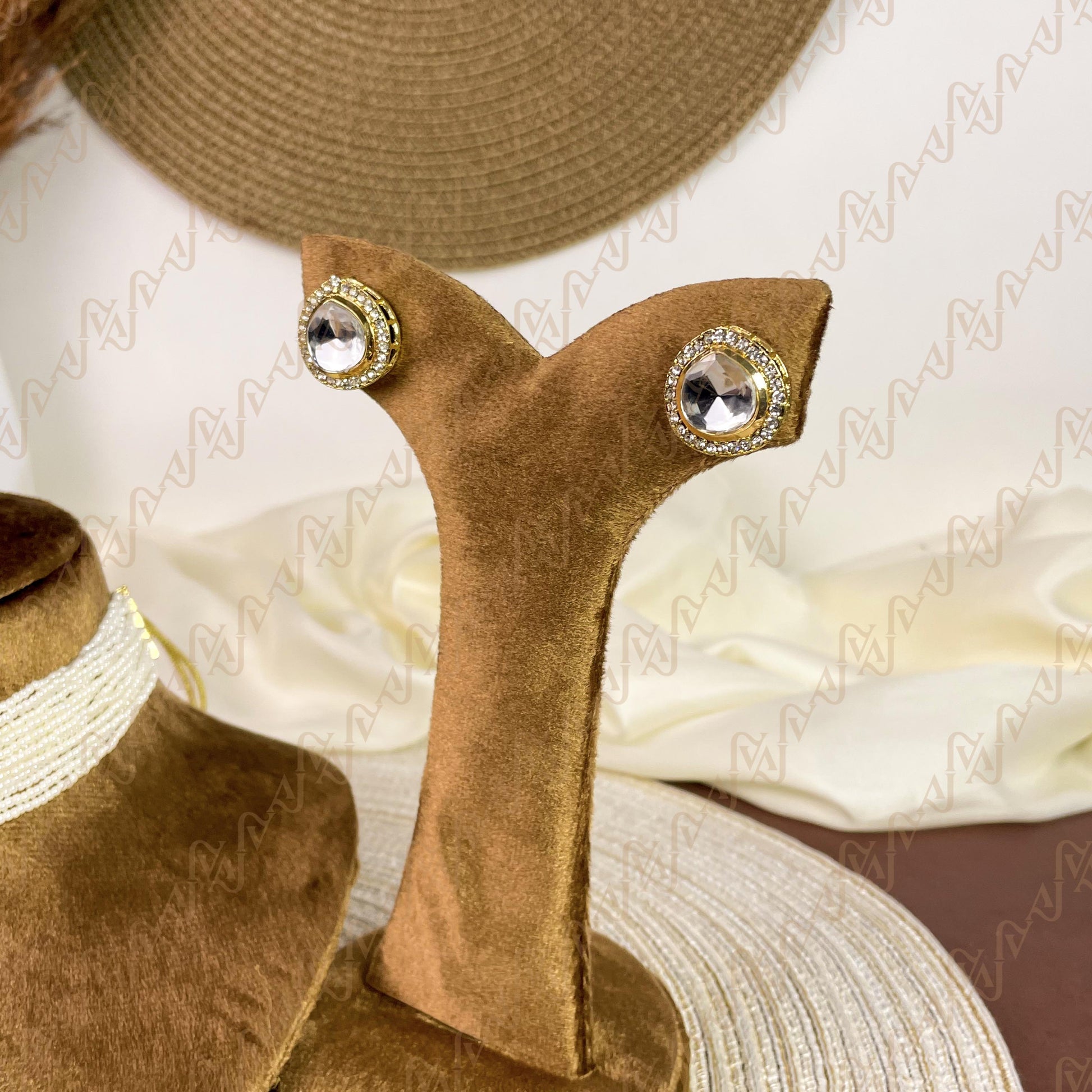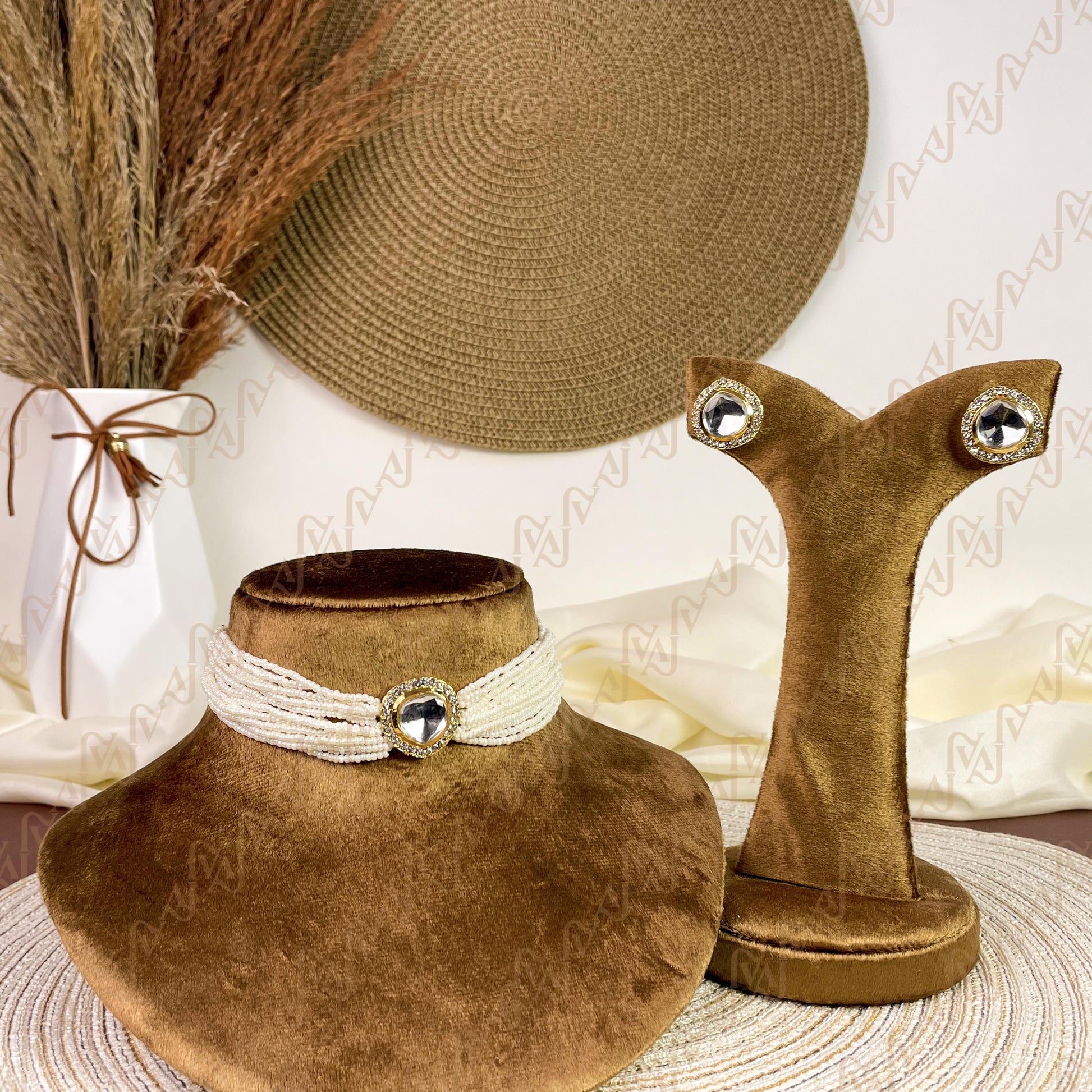 This uncut plastic Kundan choker features a pearl beaded band with unique-shaped centerpiece stones. Made with premium quality material, it has a durable build and shiny finish. Comfortable to wear, this piece is the best choice to elevate your jewellery collection.