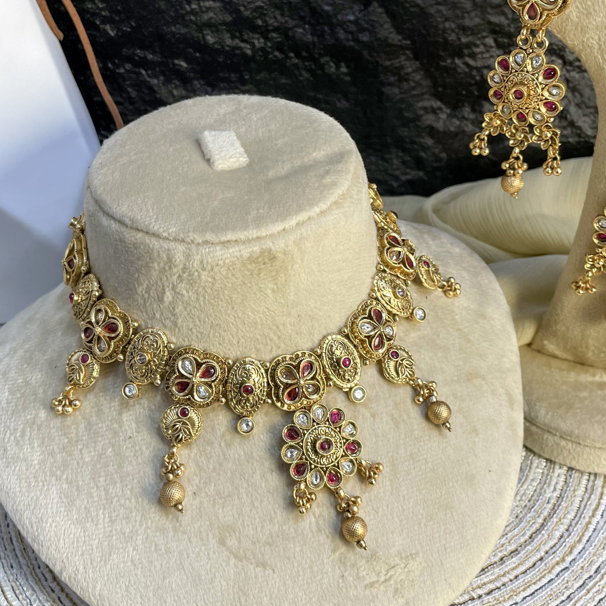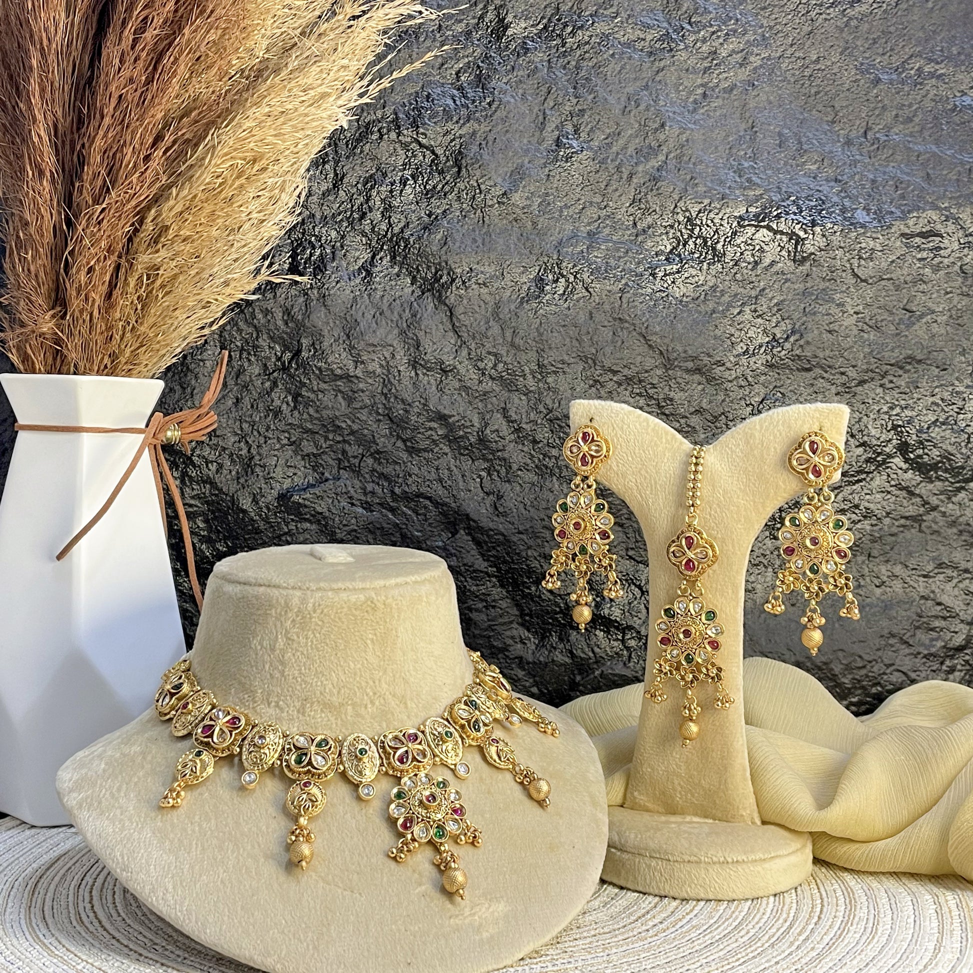 MAJESTIC RAJWARI TEARDROP POLKI NECKLACE SET