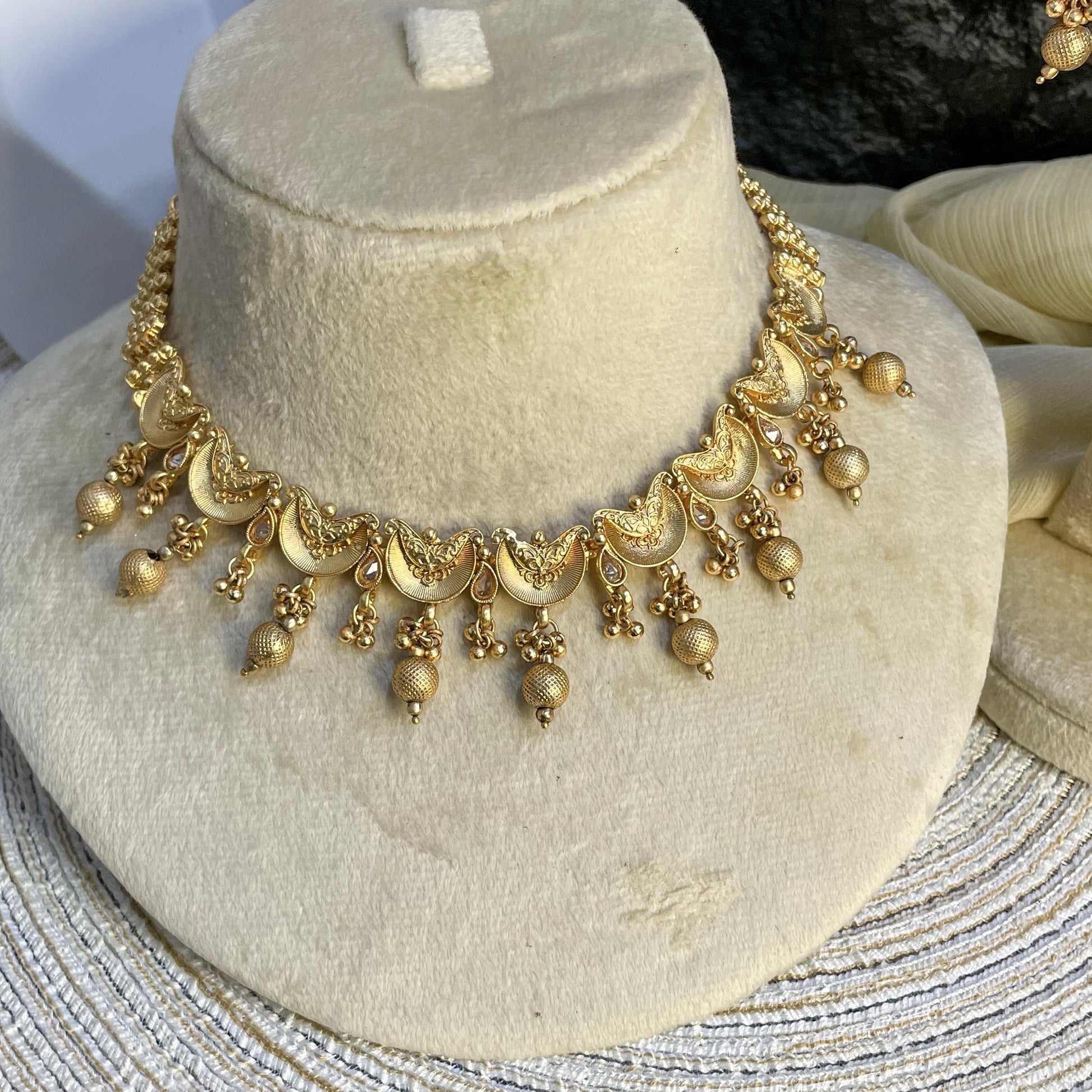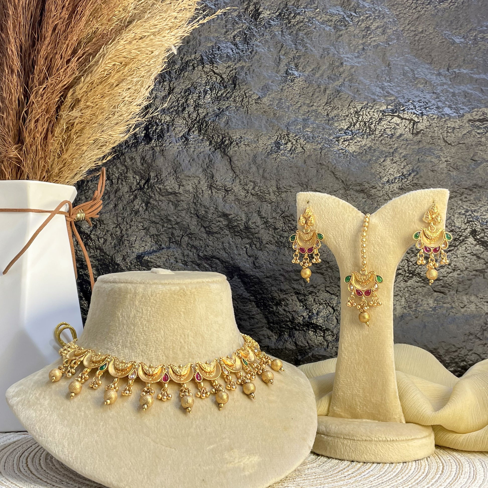 RAJWARI CRESCENT BLOOM KUNDAN NECKLACE SET