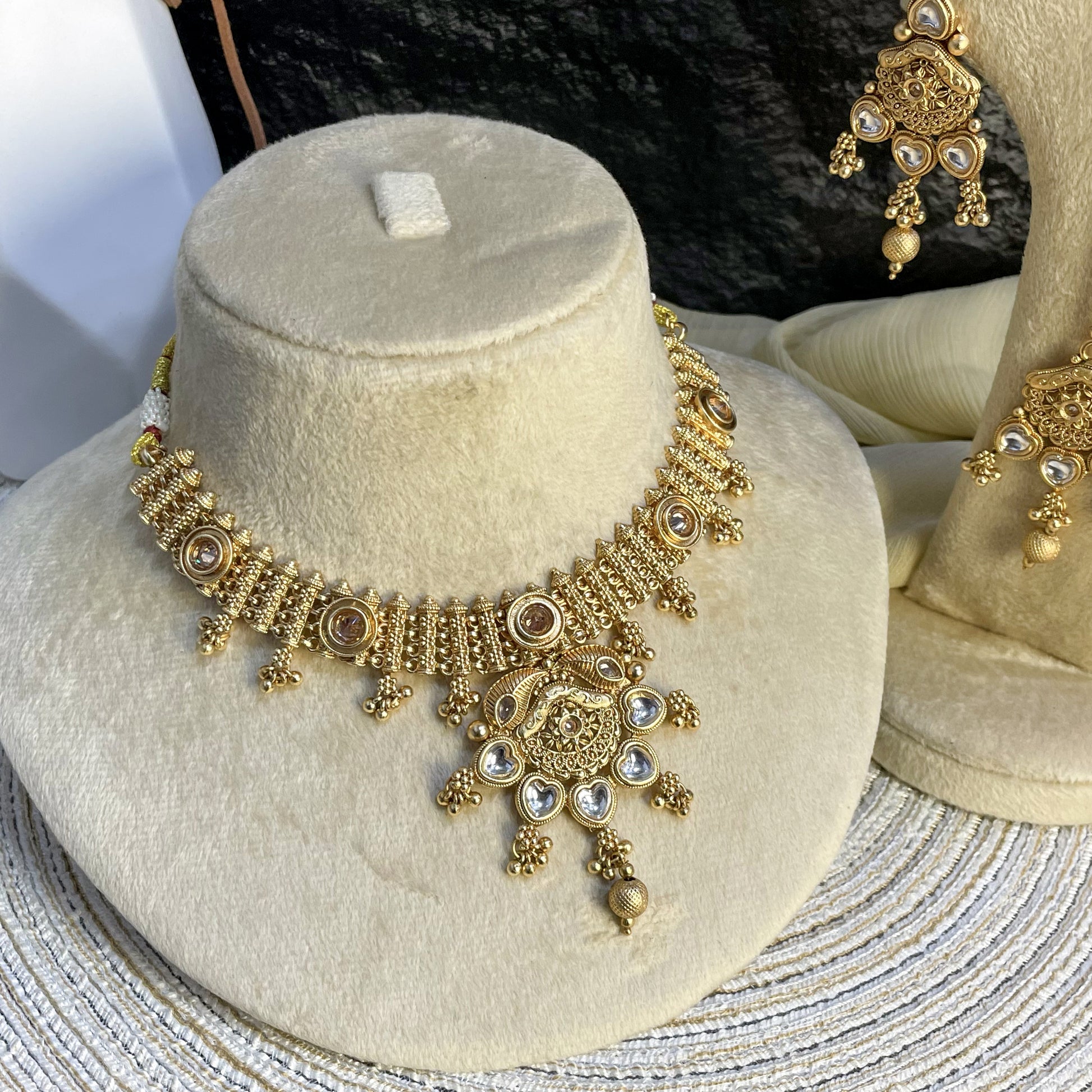 RAJWARI HEART MOTIF KUNDAN NECKLACE SET